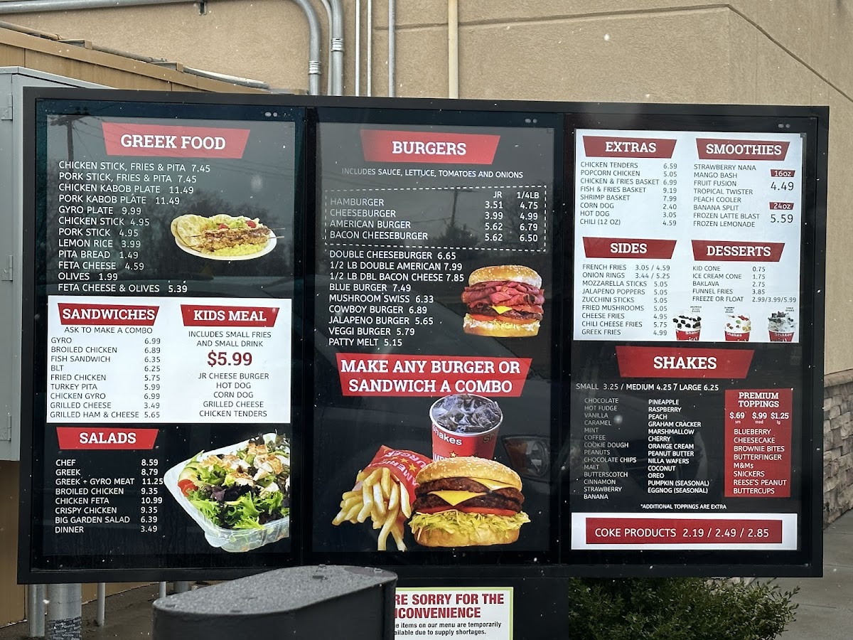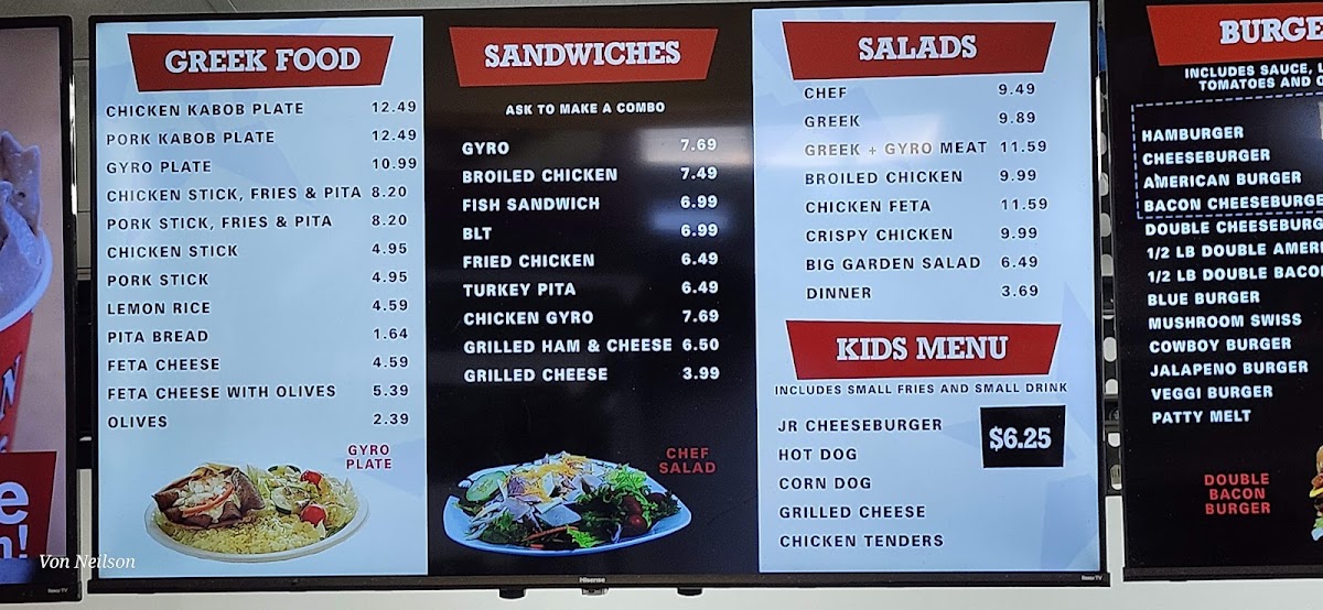 But that's not all—get ready to indulge in crispy, chunky fries and perfectly seasoned onion rings that remind patrons of childhood comfort. For something different, the Chicken Kabob Plate offers tender, well-marinated chicken that pairs beautifully with zesty lemon. With a focus on quality ingredients and friendly service, your experience at American Burgers promises not just a meal, but a memorable moment. Don't miss the opportunity to savor local favorites in a warm, hometown atmosphere!